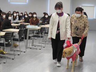 次に、盲導犬と共に生活されている地域の方に講義していただきました。