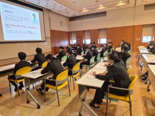 医療に興味がある生徒ということもあり、学校の説明が始まるとメモを取りながら話を聞き、実際の学校生活の様子が映し出されると皆が真剣に視聴していました。